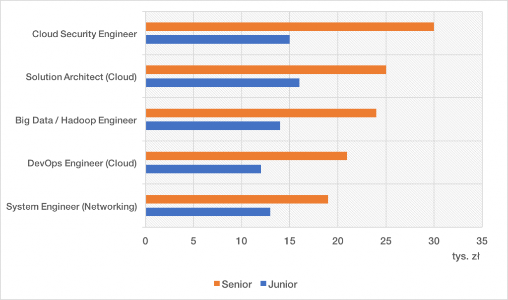 Niezależnie od tego czy liderem pod względem przychodów z chmury jest Amazon AWS czy Microsoft oraz jak szybko tą dwójkę dogania Google jedno jest pewne – chmura rozwija się w zawrotnym tempie. Wskaźnik Cisco Global Cloud Index przewiduje czterokrotny wzrost globalnego ruchu IP w chmurze w ciągu najbliższych pięciu lat. To nie pozostaje bez konsekwencji dla rynku specjalistów od technologii chmurowych.